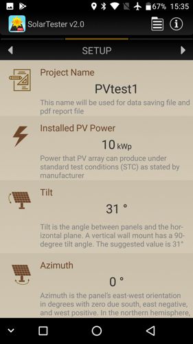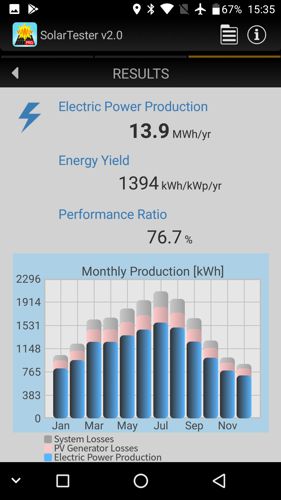 1) You may need to check the performance of an existing photovoltaic system. In this case it is sufficient to position the sensor near a module and compare the value of the power produced by the system with the value shown by SolarTester app.